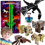 MINECRAFT - ZWSTAW 7 FIGUREK Z GRY DUŻY ZESTAW 8W1 MIECZ PIXEL ŚWIECĄCY