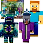 MINECRAFT - ZESTAW FIGUREK 3w1 STEVE WHISPERER WIEDŹMA WARDEN MIECZ DODATKI