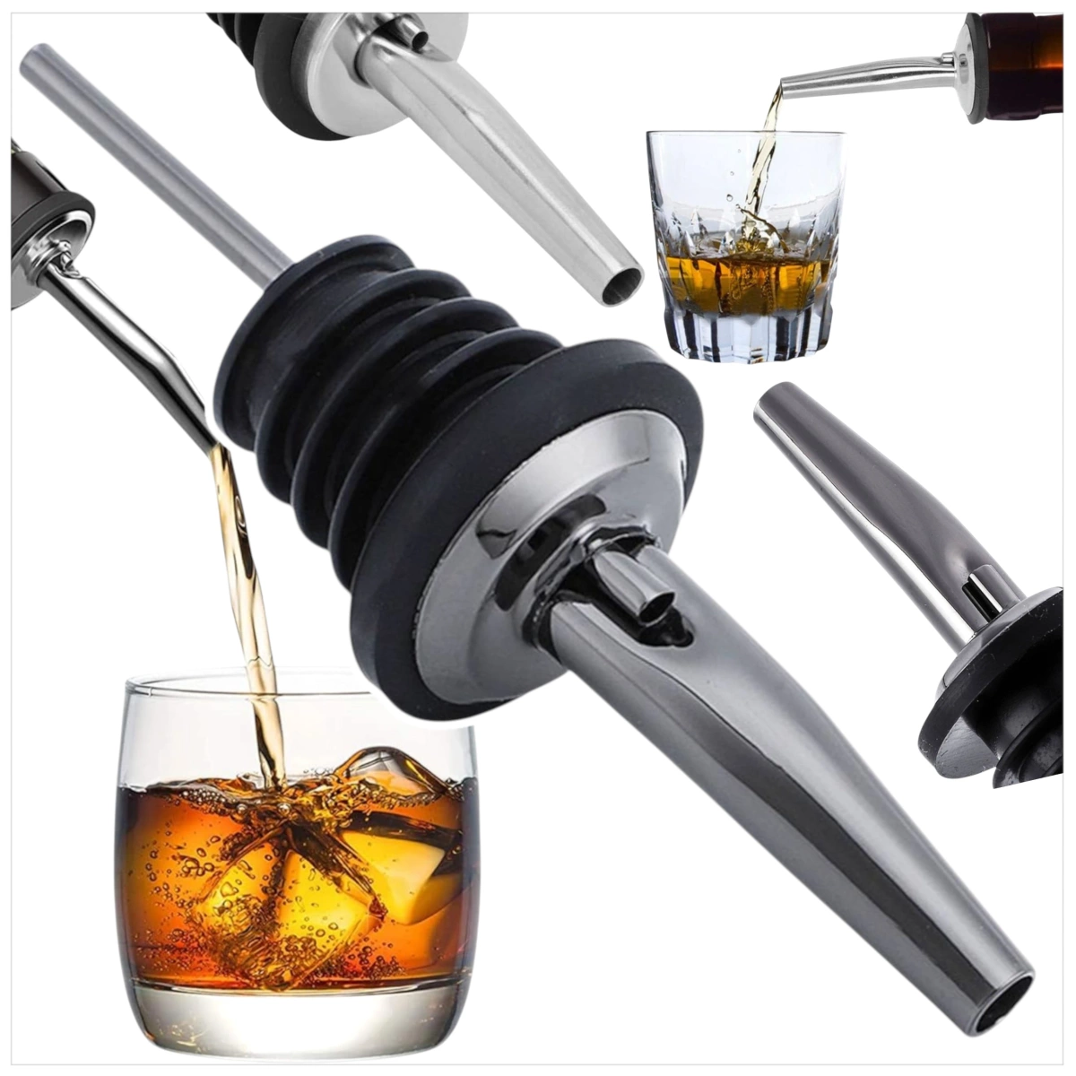 Dzięki elastycznemu, szczelnemu korkowi z gumy lub silikonu, nalewak bez problemu dopasowuje się do standardowych szyjek butelek – zarówno szklanych, jak i plastikowych.