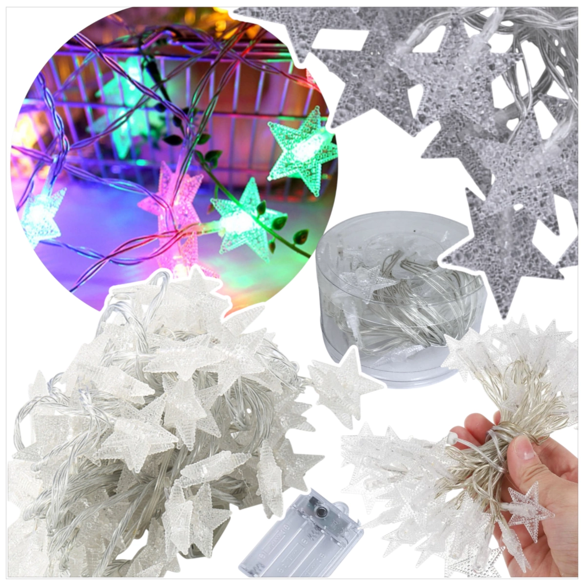 LAMPKI ŚWIĄTECZNE KSZTAŁT GWIAZD DEKORACJA ŁAŃCUCH LED KOLOROWE GWIAZDKI