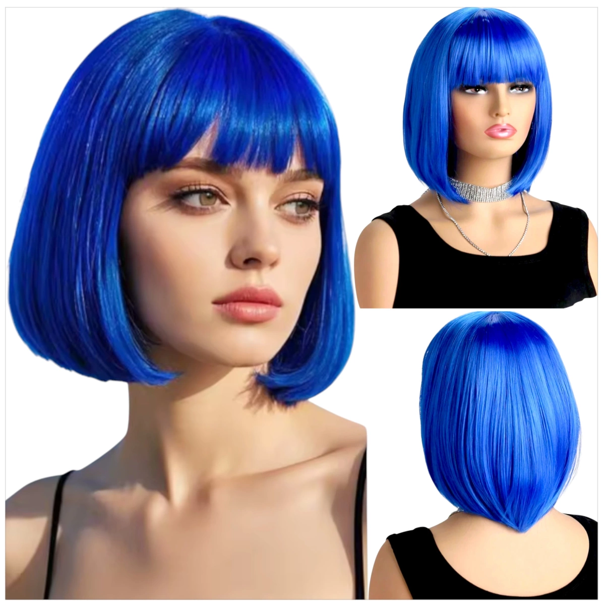 Chcesz wyróżnić się na imprezie i dodać swojej stylizacji odważnego charakteru? Niebieska peruka bob z grzywką retro lata 60 to połączenie klasycznej elegancji z neonowym glamour. Intensywny odcień błękitu przyciąga spojrzenia i podkreśla Twój wyjątkowy styl. Fryzura w klimacie lat 60. sprawdzi się doskonale na karnawał, imprezę tematyczną, sesję zdjęciową czy występ sceniczny. Dzięki starannemu wykonaniu i regulowanej siatce peruka jest wygodna i stabilna w noszeniu.