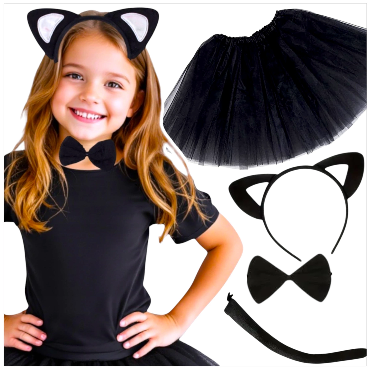 STRÓJ DLA DZIEWCZYNKI - CZARNY KOTEK KOT 3w1 OPASKA SPÓDNICZKA