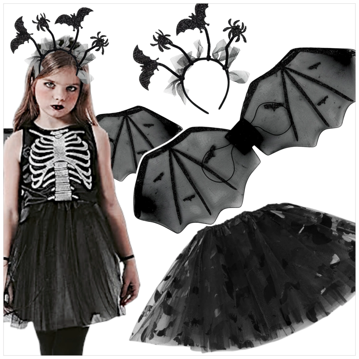 - Efektowna spódniczka tutu – trzy warstwy tiulu i nadruk błyszczących nietoperzy