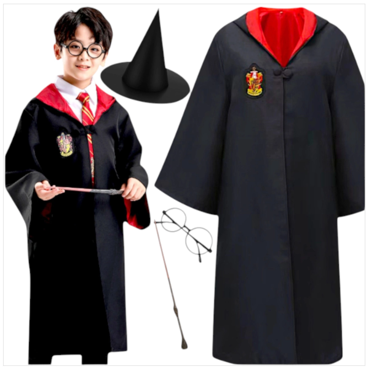 Ten zestaw to strój, akcesoria i klimat – wszystko w jednym. Idealny na każdą magiczną okazję: Halloween, karnawał, urodziny z motywem Hogwartu, teatrzyki czy kreatywną zabawę w domu.