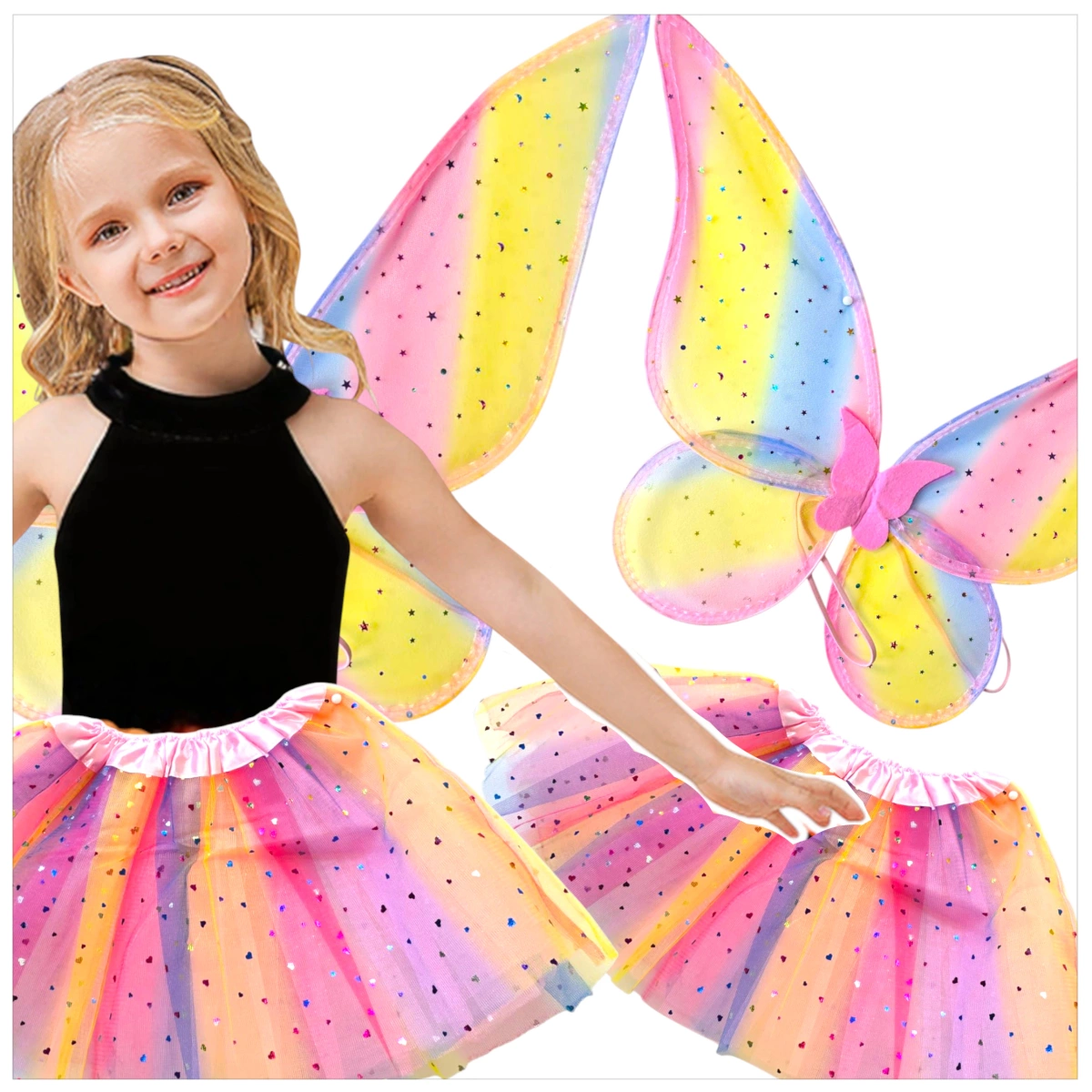 Tęczowy Zestaw Wróżki z Brokatem – Skrzydła + Spódniczka
