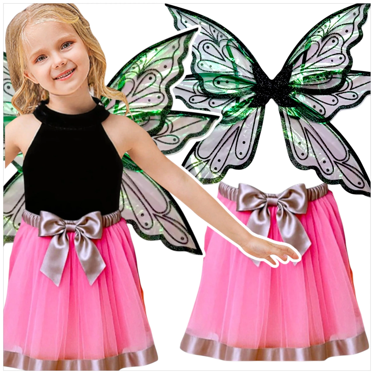 STRÓJ MAGICZNA WRÓŻKA PRZEBRANIE WRÓŻKI SKRZYDEŁKA MOTYLA + SPÓDNICZKA