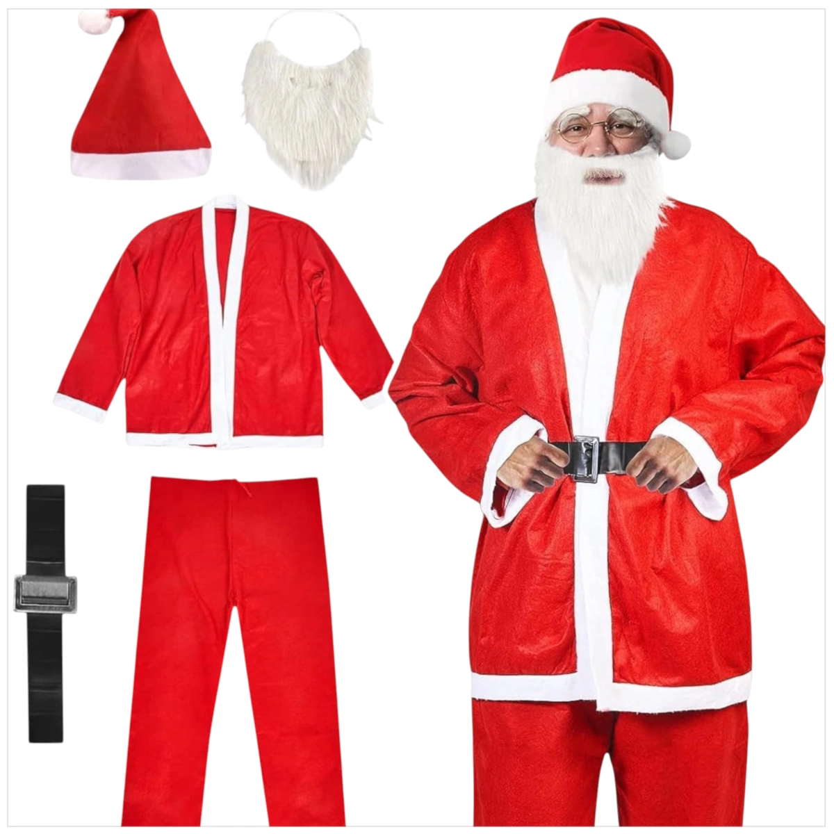 STRÓJ ŚWIĘTEGO MIKOŁAJA DLA DOROSŁYCH KOSTIUM PŁASZCZ SPODNIE CZAPKA BRODA
