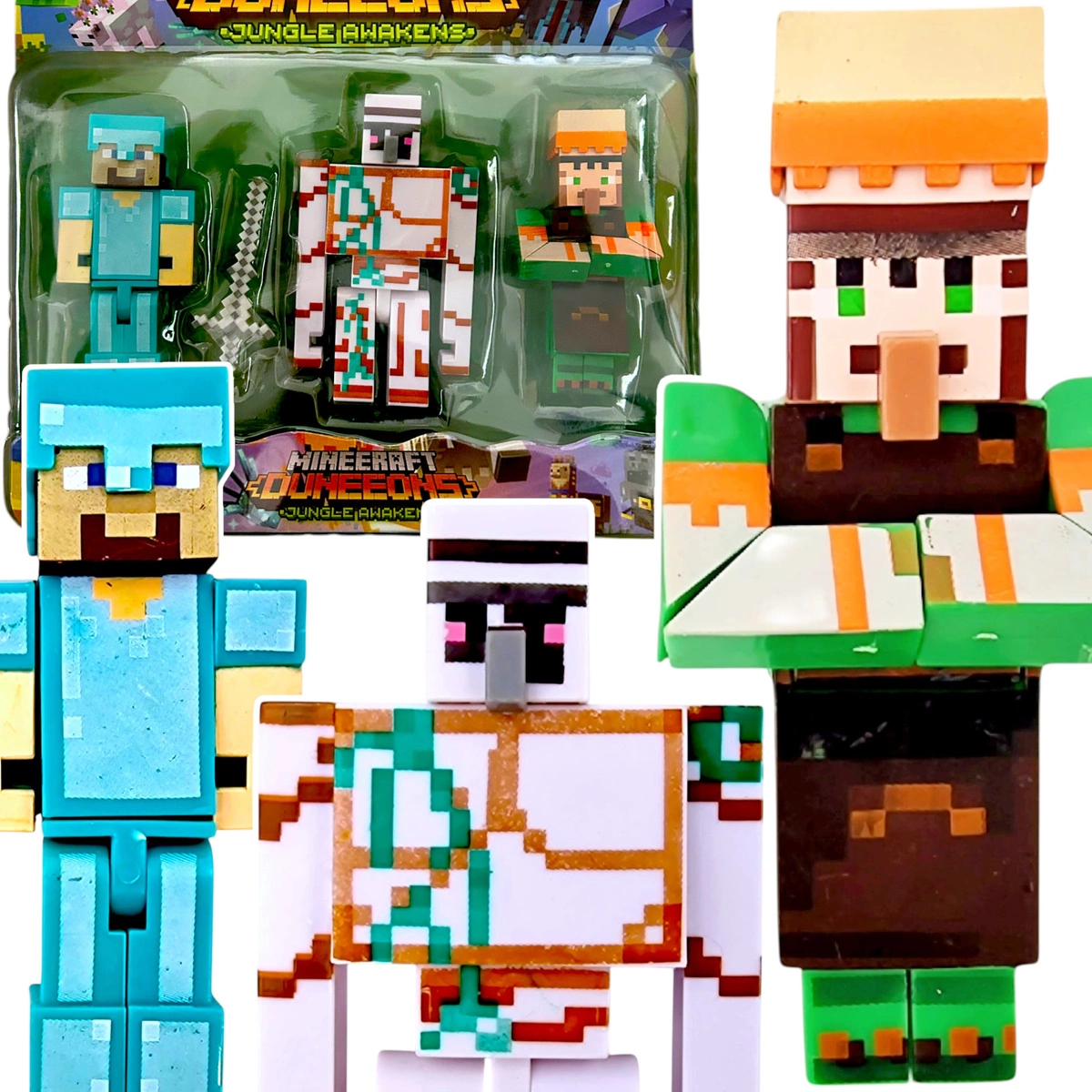 FIGURKA MINECRAFT ZESTAW FIGUREK 3w1 GOLEM DIAMENTOWY STEVE OSADNIK DODATKI