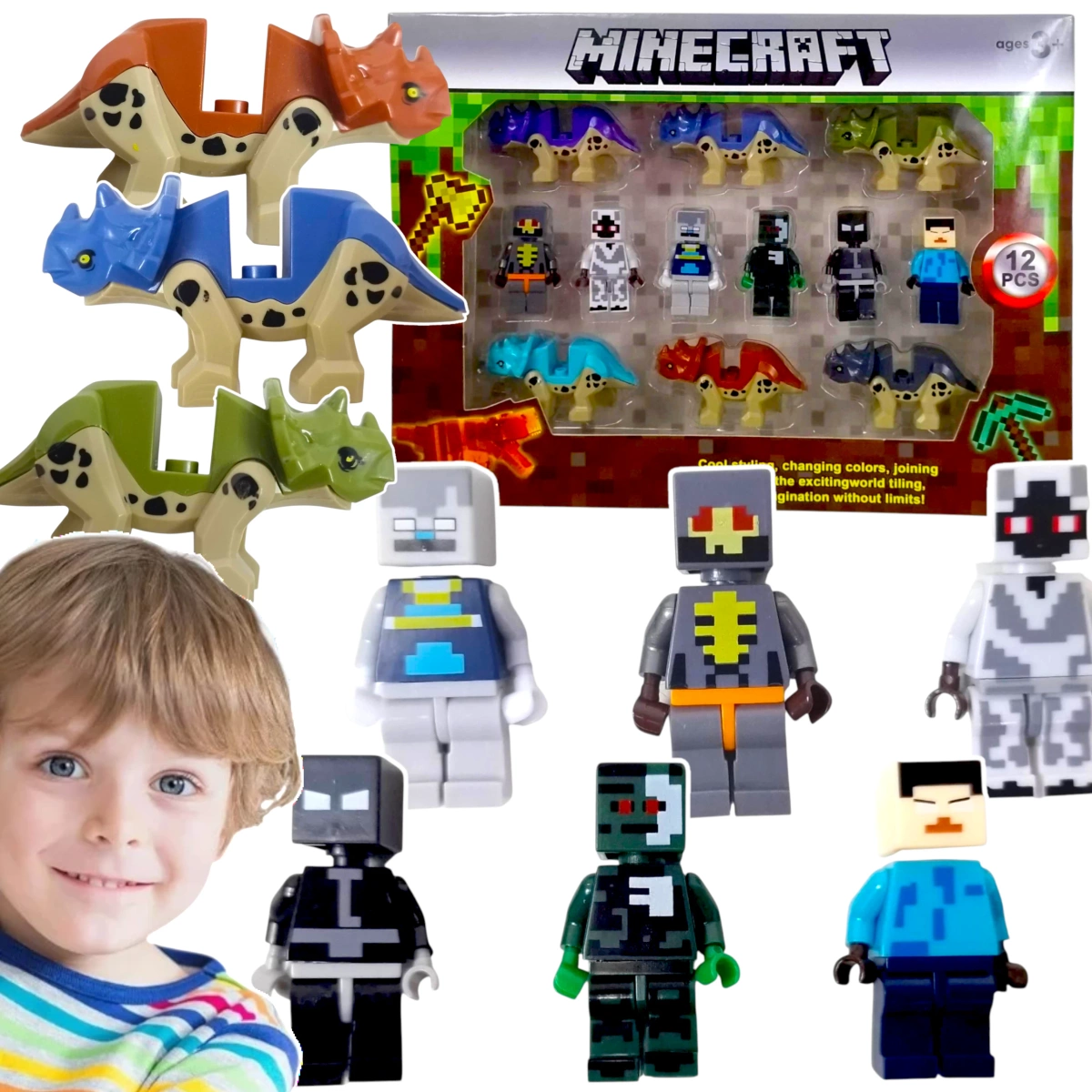 MINECRAFT DUŻY ZESTAW FIGUREK 12 SZTUK FIGURKI DINOZAURY KLOCKI 12w1 STEVE