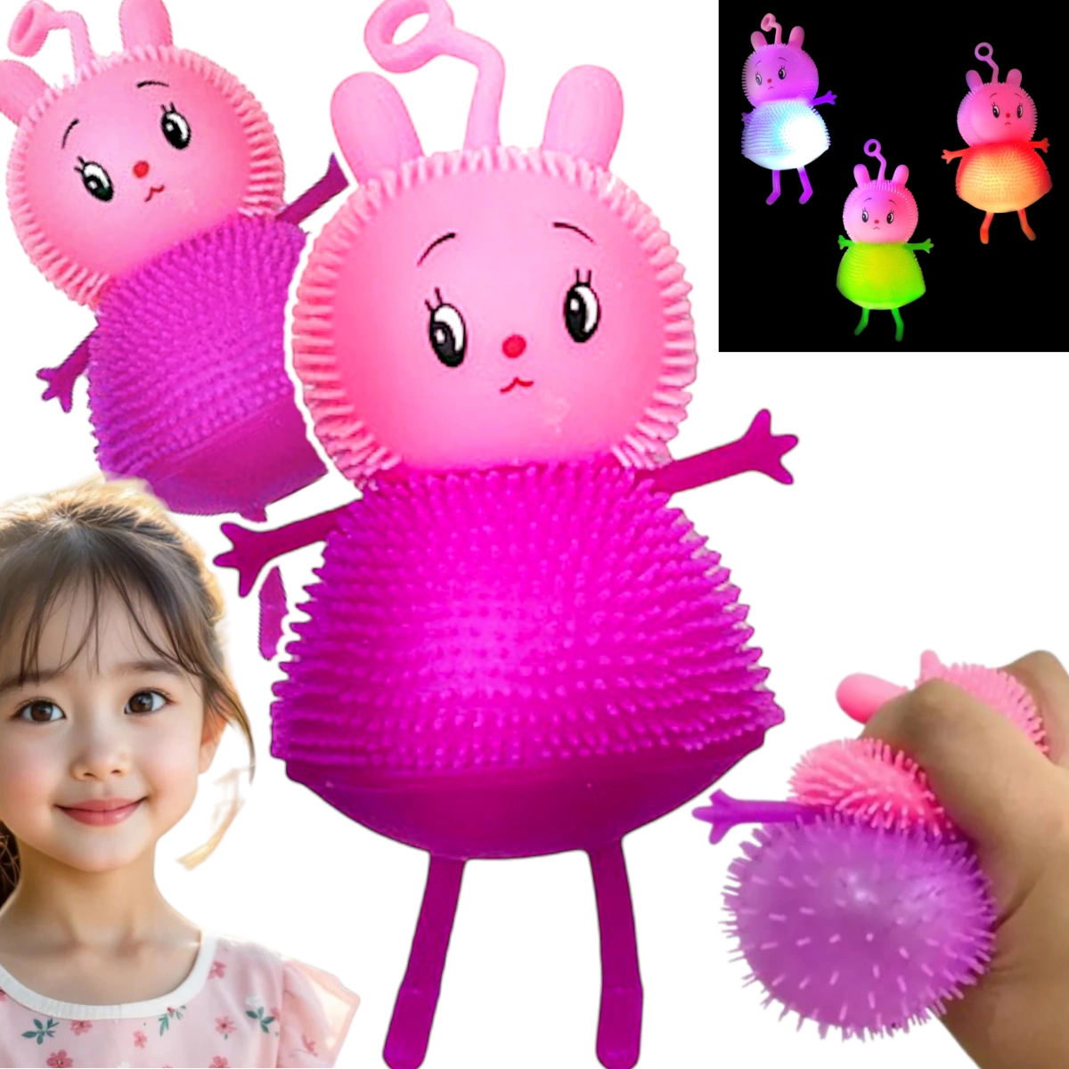 Szukasz pomysłowego sposobu na rozładowanie napięcia i jednoczesną zabawę? Ten kolorowy gniotek w uroczej formie to propozycja, która zachwyca nie tylko wyglądem, ale i funkcjonalnością. Idealny zarówno dla dzieci, jak i dorosłych – poprawia nastrój, relaksuje i daje dużo frajdy. Dzięki miękkiej, przyjemnej w dotyku strukturze, można go ściskać, ugniatać i zgniatać bez końca. A gdy zacznie świecić – zabawa staje się jeszcze bardziej wyjątkowa!