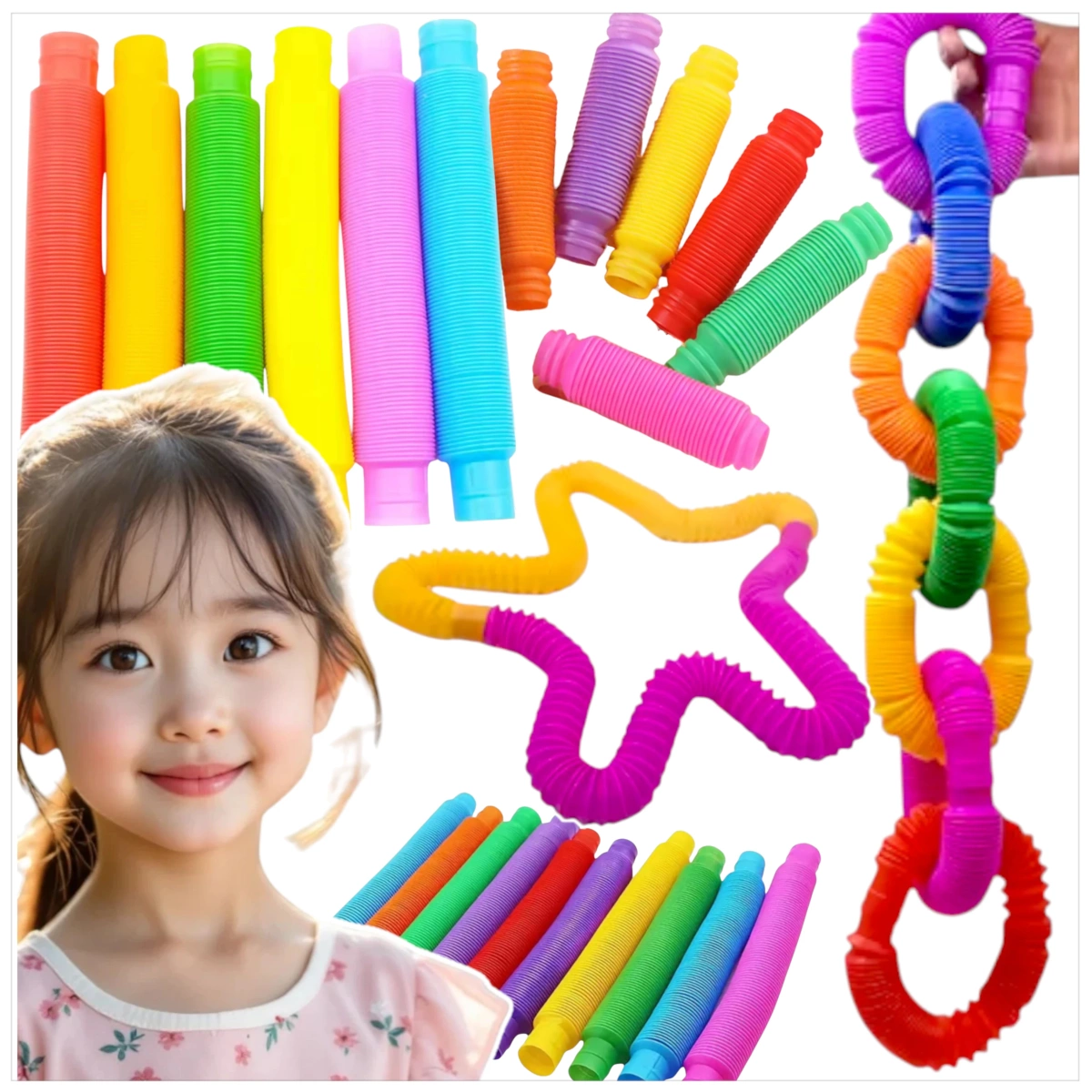 RURKA ANTYSTRESOWA SENSORYCZNA GNIOTEK RURA POP TUBE XXL MEGA ROZCIĄGLIWA - ZESTAW 16 SZTUK